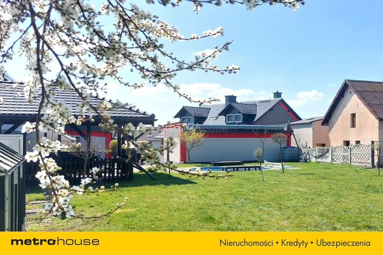 Na działce zagospodarowano również miejsce na altanę, szklarnię oraz basen. Podjazdy do budynków są wykończone kostką brukową, a cały teren został estetycznie ozdobiony roślinnością i wypielęgnowaną trawą.