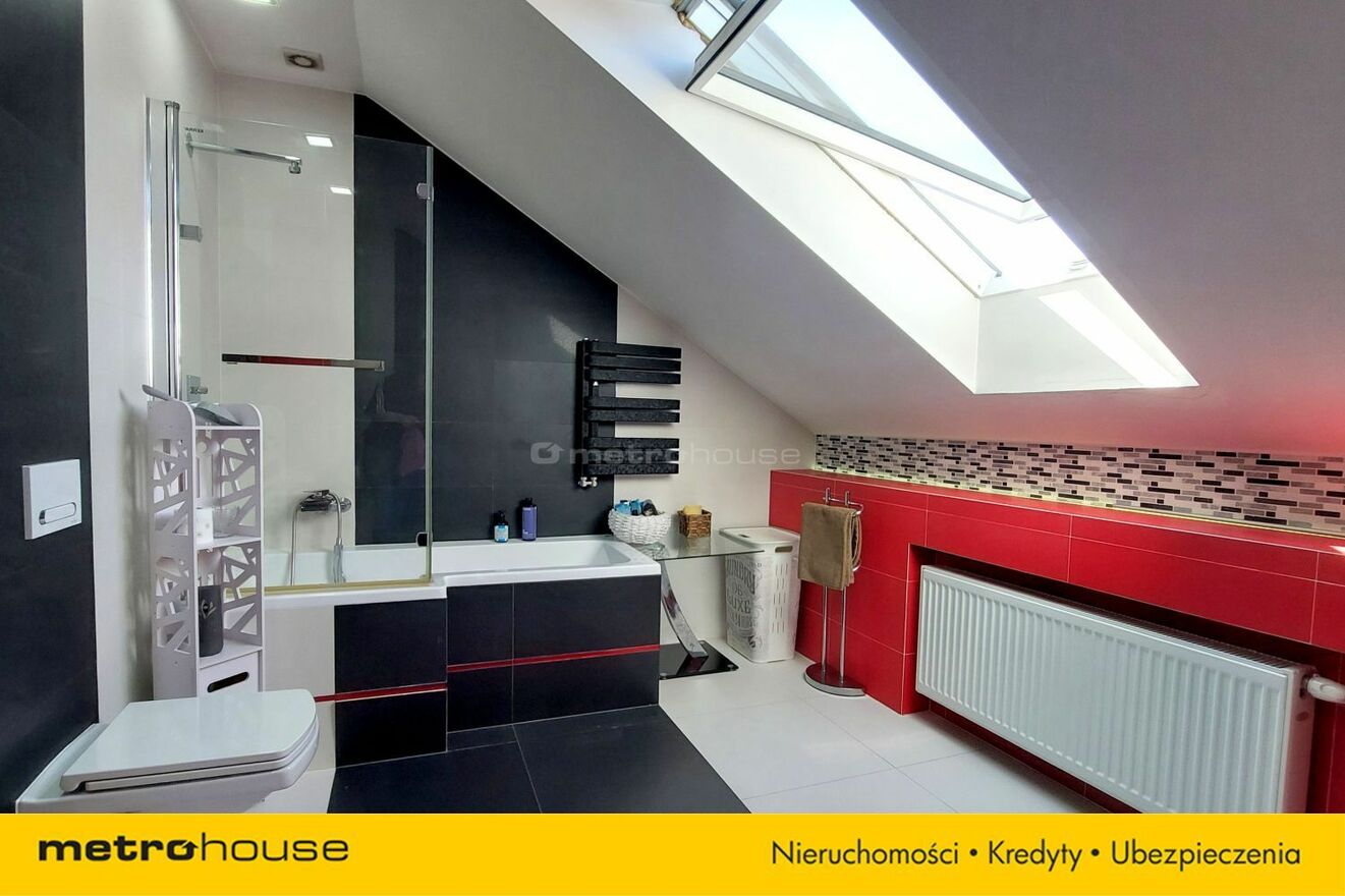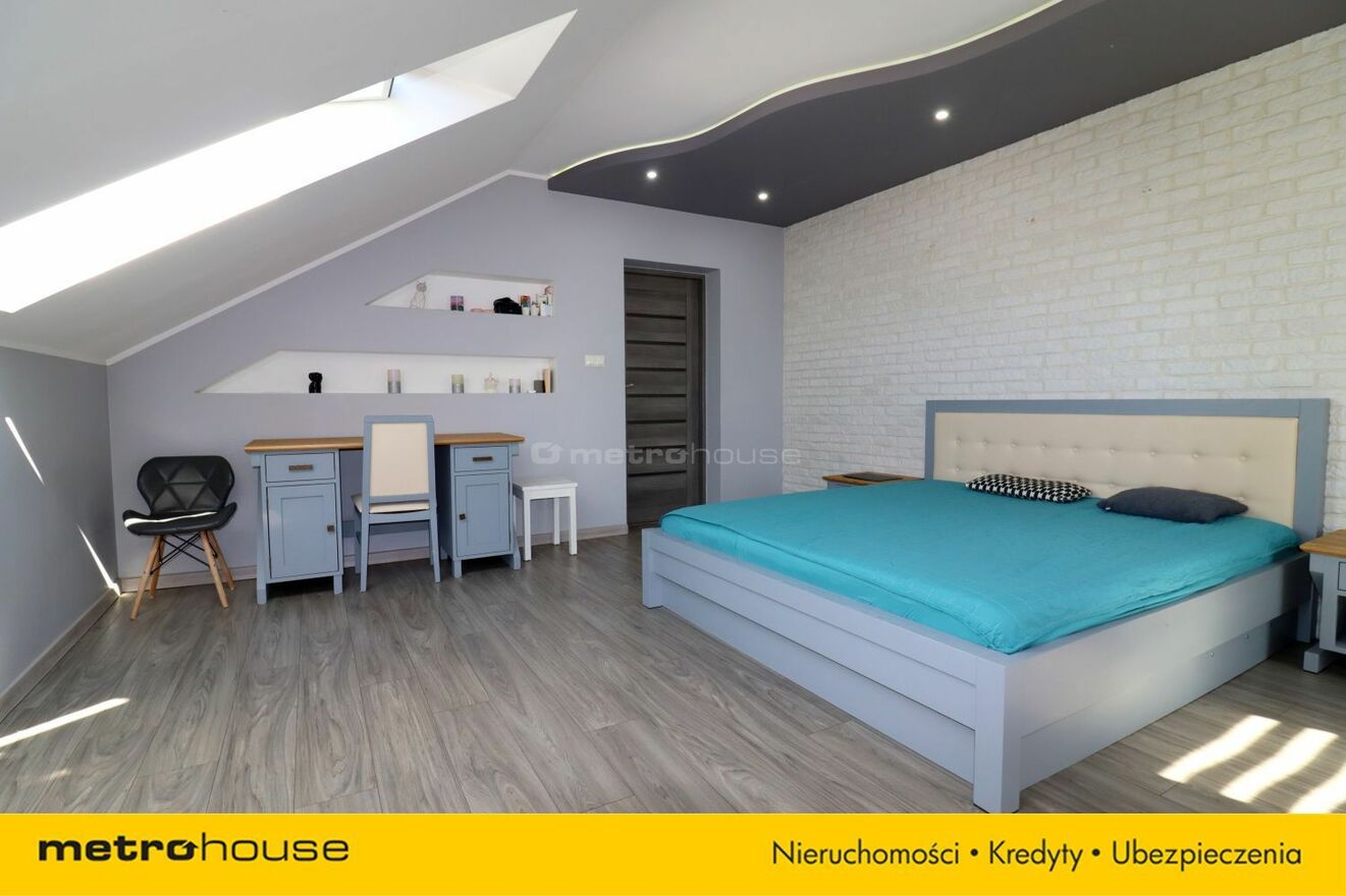 Na parterze znajduje się kominek, z kolei na piętro prowadzą jesionowe schody. W oknach na parterze założone są rolety antywłamaniowe, a na piętrze w oknach dachowych- rolety zaciemniające.