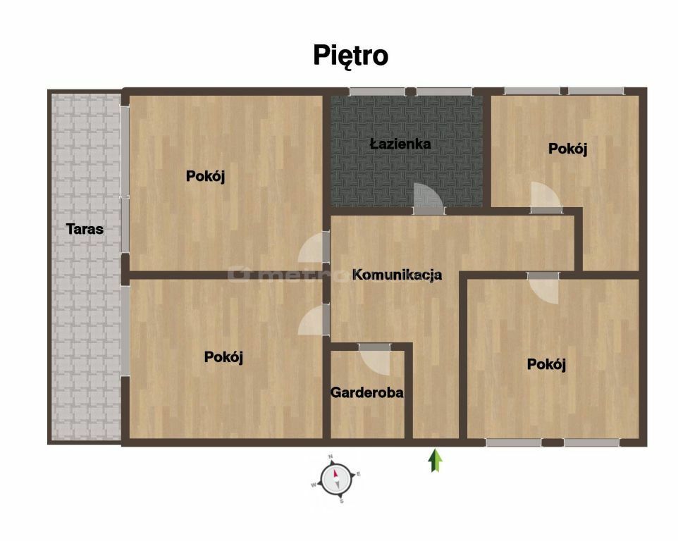 - Piętra, w skład którego wchodzą 4 pokoje i łazienka.